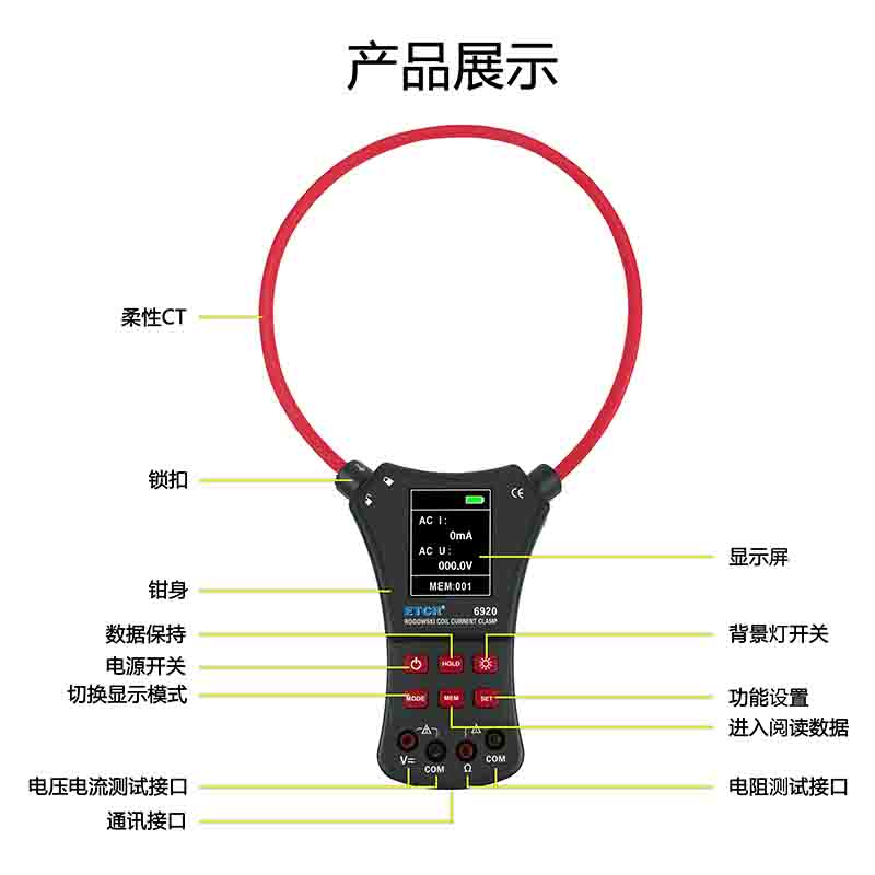 ETCR6920柔性電流鉗表又名柔性線圈鉗表、超大電流鉗表、羅氏線圈電流鉗表、洛氏線圈電流鉗表,用于交流電流測(cè)試、電壓測(cè)試、電阻測(cè)試、通斷測(cè)試。柔性線圈無(wú)任何裸露金屬導(dǎo)體,體積小、重量輕、柔軟靈活,特別適合大尺寸導(dǎo)體、狹窄環(huán)境和排線密集的場(chǎng)所,可用于信號(hào)嚴(yán)重畸變的工業(yè)環(huán)境電流測(cè)試。廣泛適用于電力、通信、氣象、鐵路、油田、建筑、計(jì)量、科研教學(xué)單位、工礦企業(yè)等領(lǐng)域。
