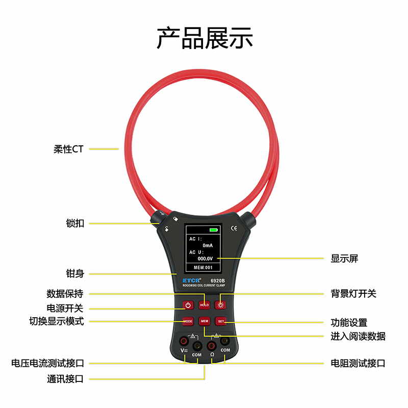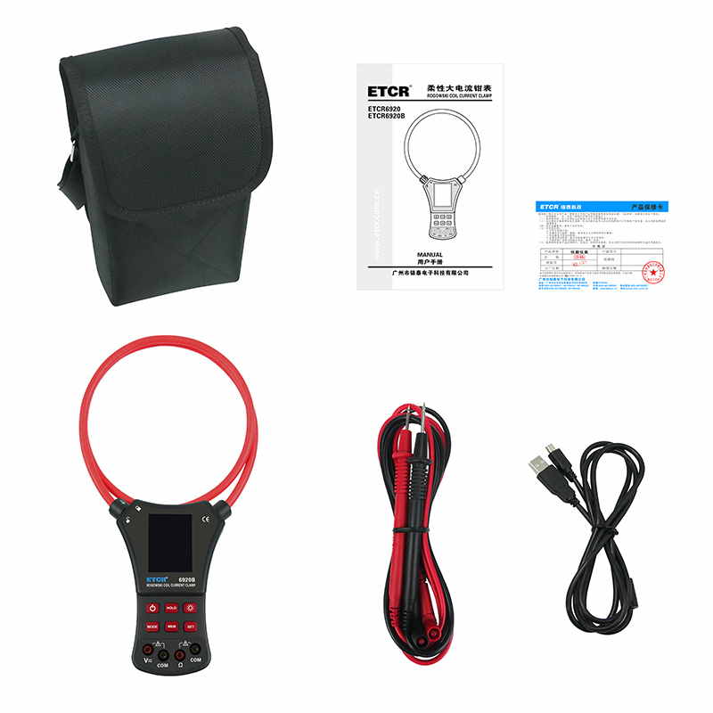 ETCR6920B柔性電流鉗表又名柔性線圈鉗表、超大電流鉗表、羅氏線圈電流鉗表、洛氏線圈電流鉗表,用于交流電流測(cè)試、電壓測(cè)試、電阻測(cè)試、通斷測(cè)試。柔性線圈無任何裸露金屬導(dǎo)體,體積小、重量輕、柔軟靈活,特別適合大尺寸導(dǎo)體、狹窄環(huán)境和排線密集的場(chǎng)所,可用于信號(hào)嚴(yán)重畸變的工業(yè)環(huán)境電流測(cè)試。廣泛適用于電力、通信、氣象、鐵路、油田、建筑、計(jì)量、科研教學(xué)單位、工礦企業(yè)等領(lǐng)域。