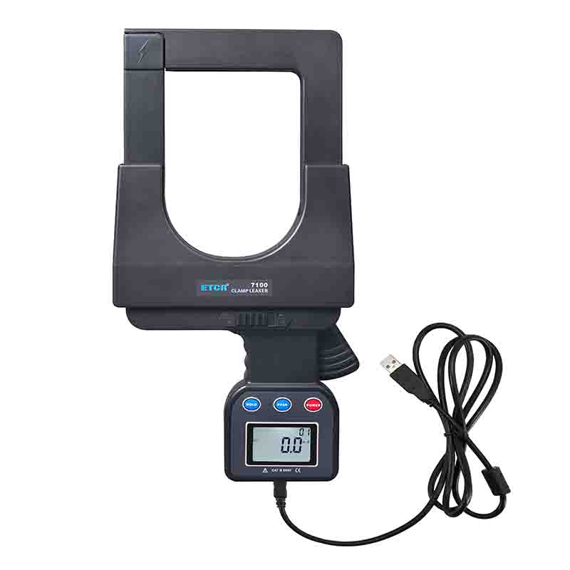 ETCR7100超大口徑鉗形漏電電流表具有峰值保持、數(shù)據(jù)保持、數(shù)據(jù)存儲等功能。具有USB通訊功能,通過USB接口及上位機(jī)軟件可以在PC端在線實時監(jiān)測,動態(tài)顯示最大、最小、平均值,具有報警值設(shè)定及報警指示功能,具有歷史數(shù)據(jù)讀取、保存、分析等功能。