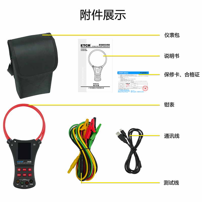 ETCR7350B柔性鉗形功率表 | AC 0.0A~6000A | 0.00V~600V | 0.0°~360° | Φ300mm | 200組 |